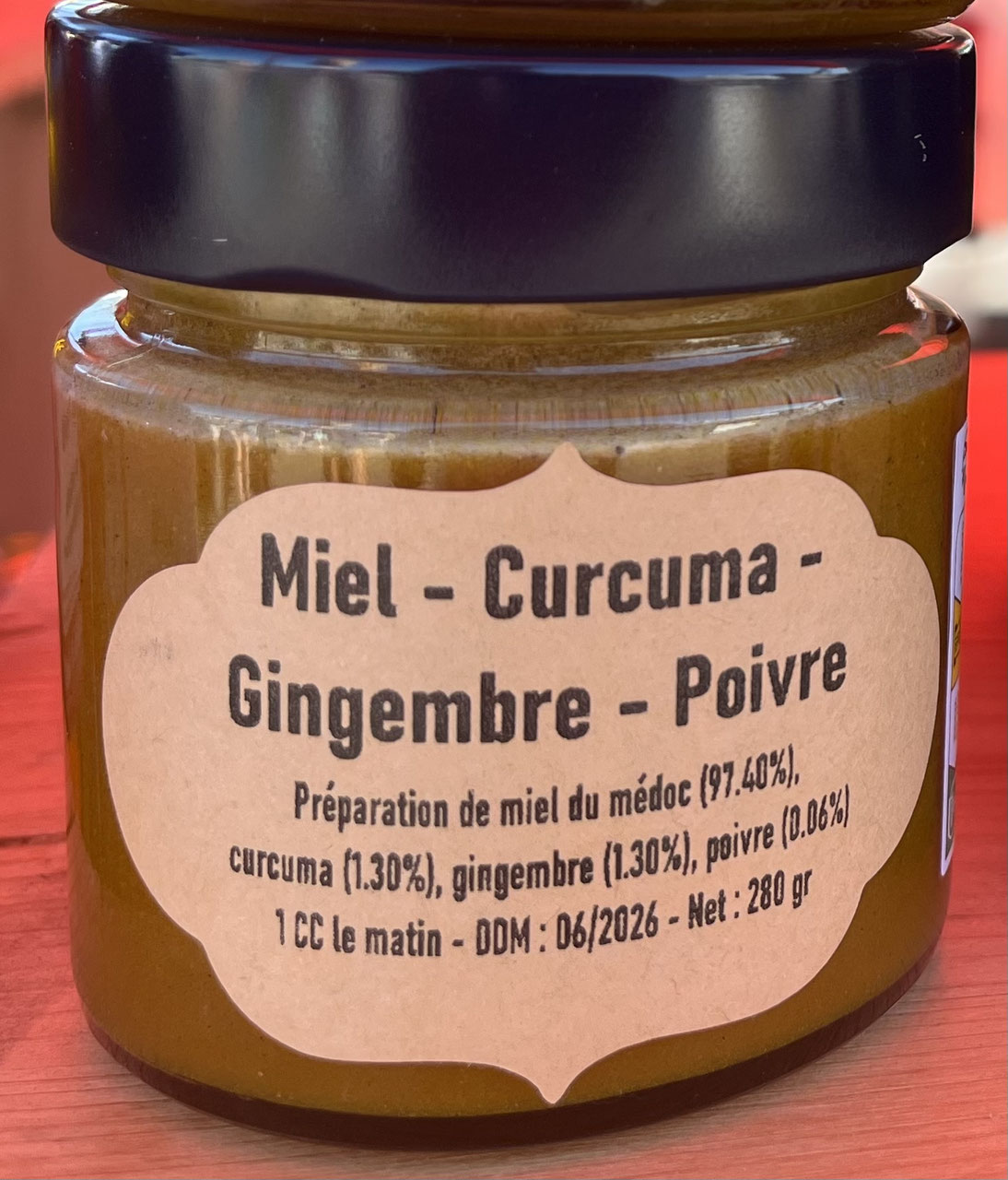 Préparation de miel, curcuma, gingembre et poivre