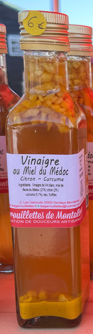 Ingrédients : Vinaigre de Vin blanc, miel de fleurs du médoc, eau, sulfites